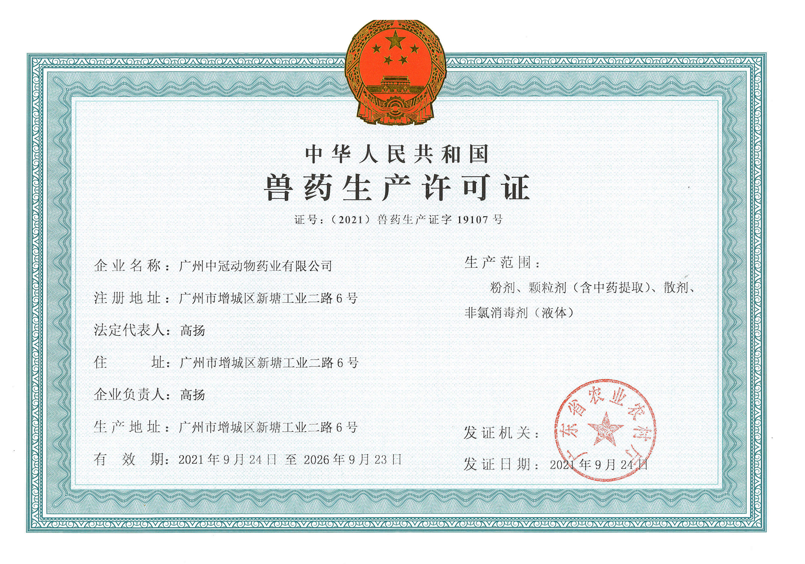 熱烈祝賀廣州中冠動物藥業有限公司 新生產基地順利通過獸藥GMP驗收